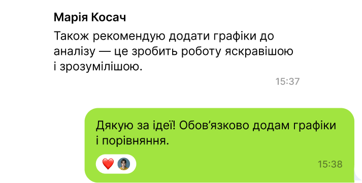 Донька почала наводити приклади з уроків у повсякденних розмовах, шукати інформацію для власних ідей. Для мене важливо, що школа дає не тільки знання, а й вміння бачити, як їх застосувати.